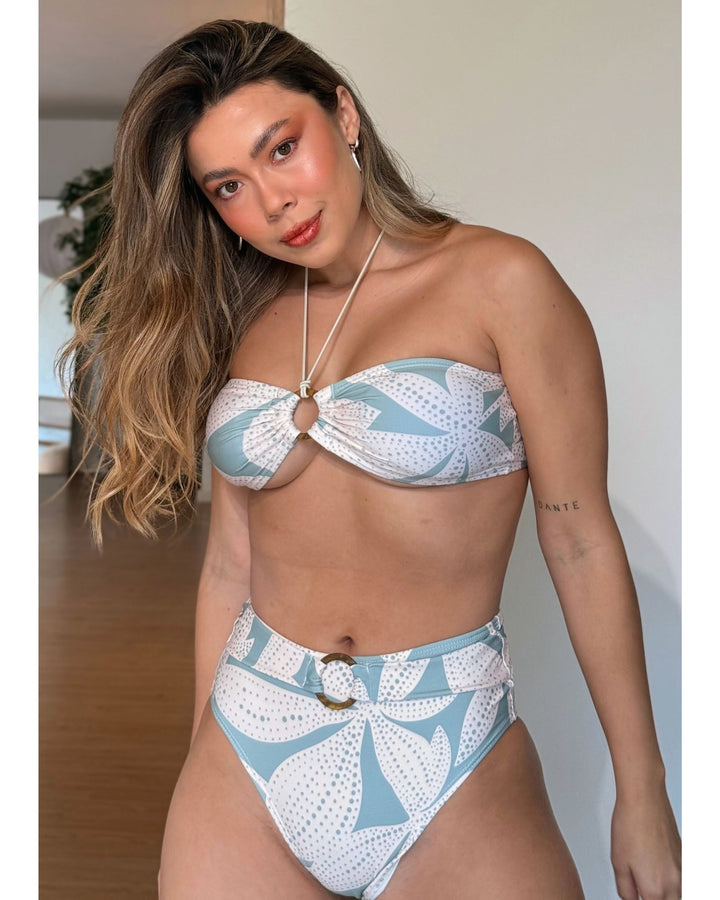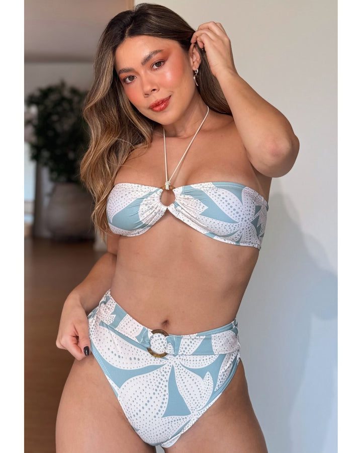 - Bikini de dos piezas con top bandeau y panty de tiro alto