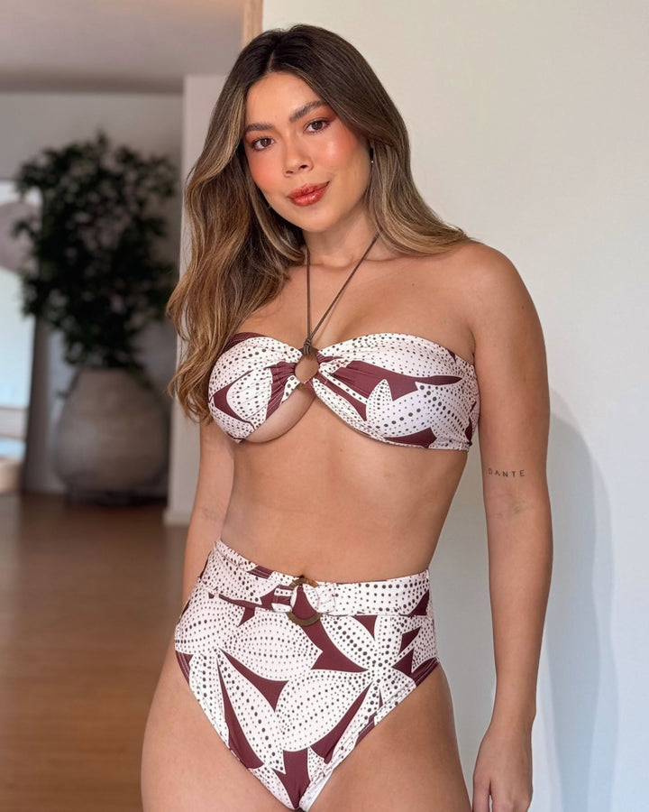 - Bikini de dos piezas con top bandeau y panty de tiro alto