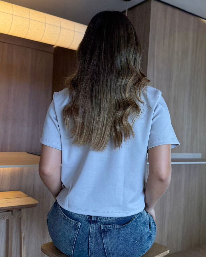- Su diseño destaca por el corte asimétrico en la parte frontal, que aporta un toque actual y estilizado, y por el bordado minimalista “ES.” al centro del pecho, que añade un detalle limpio y sofisticado.