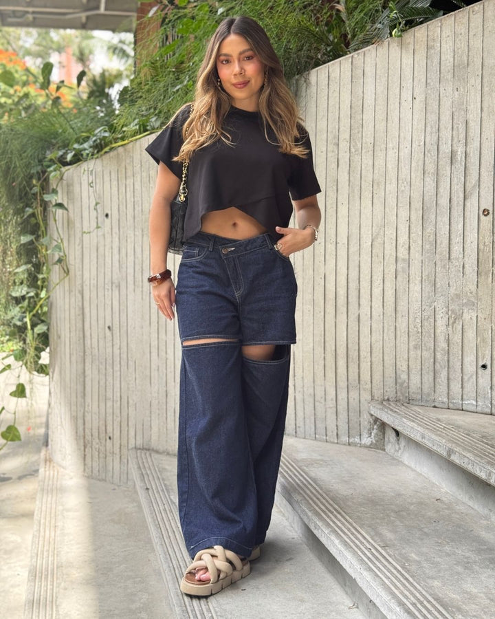 - Corte: Silueta cómoda con terminación asimétrica.
