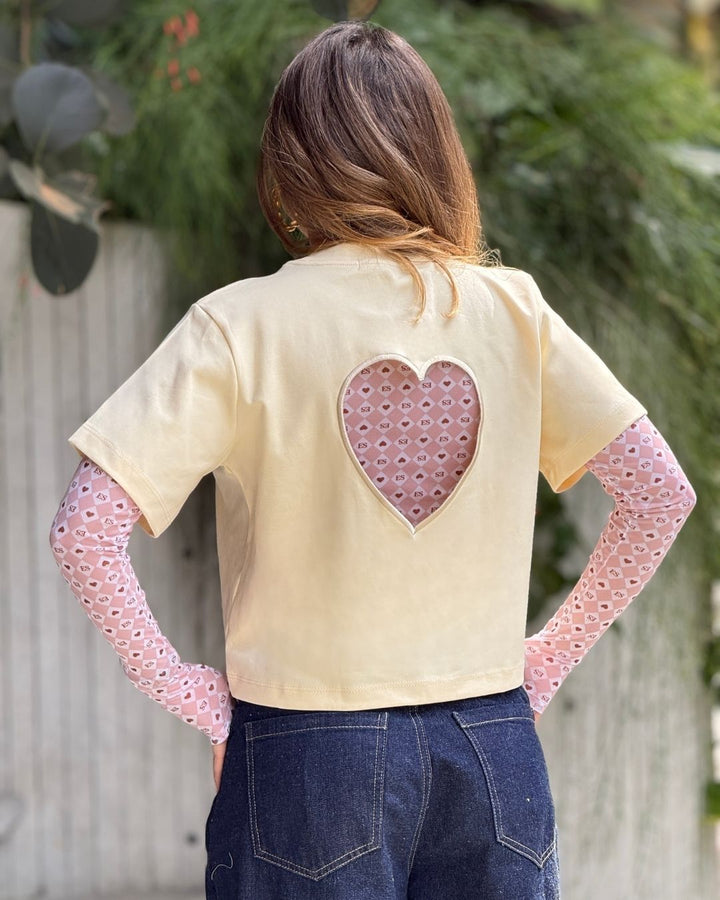 - Aplique frontal en forma de corazón con estampado